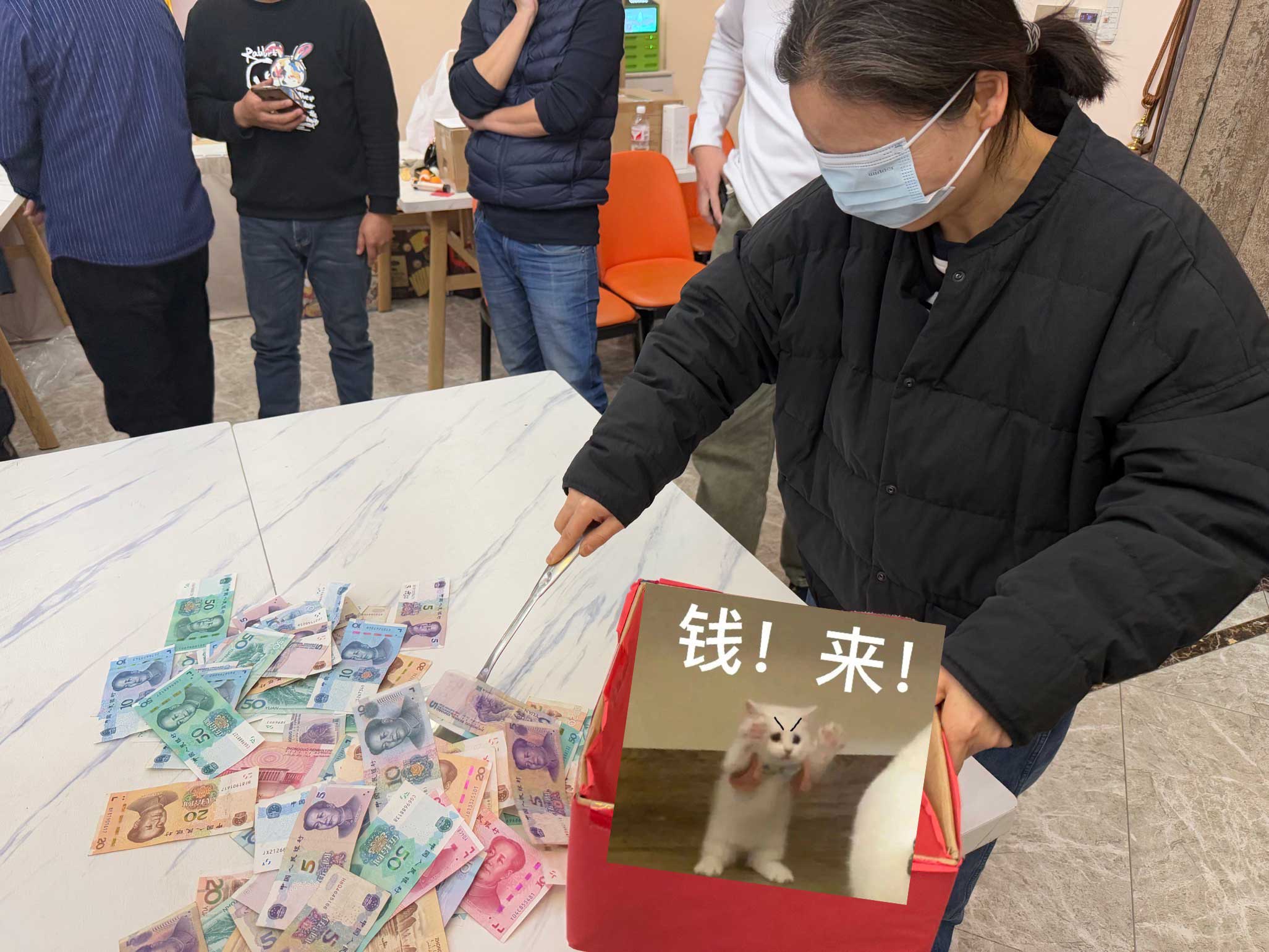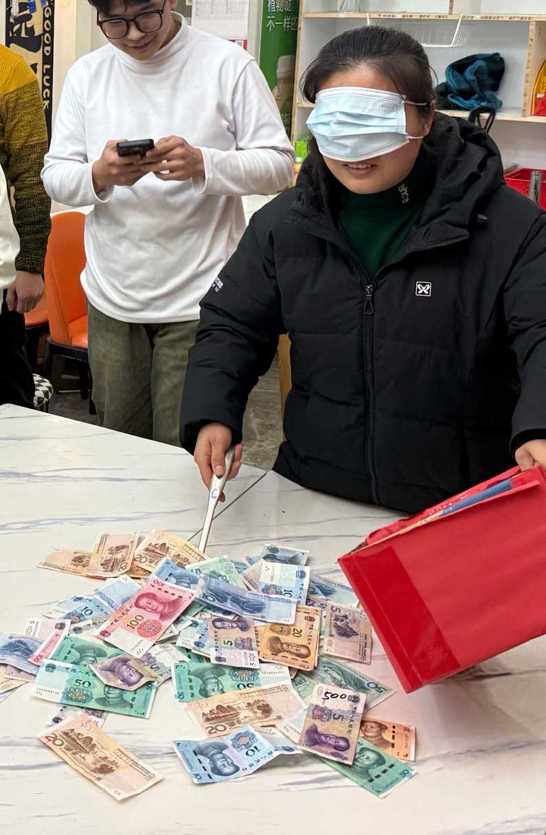 蒙眼鏟錢游戲更是將現場的歡樂氛圍推向了極致。蒙上雙眼的同事們在劃定區域內小心翼翼地摸索前進,努力鏟起象征著好運的