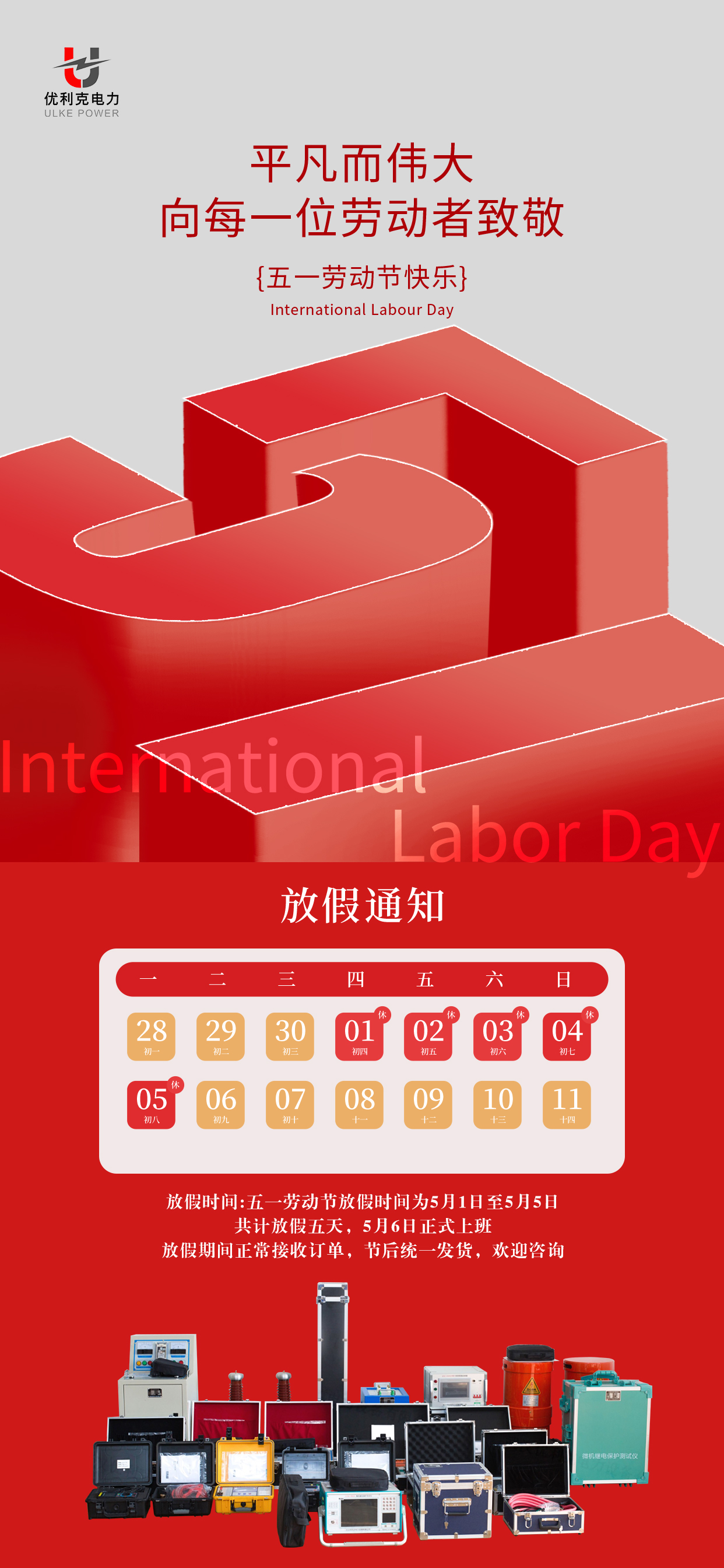 一直以來,感謝您對武漢優利克電力的支持與信任。我們將一如既往地為您提供優質的產品和服務。因放假給您帶來的不便,敬