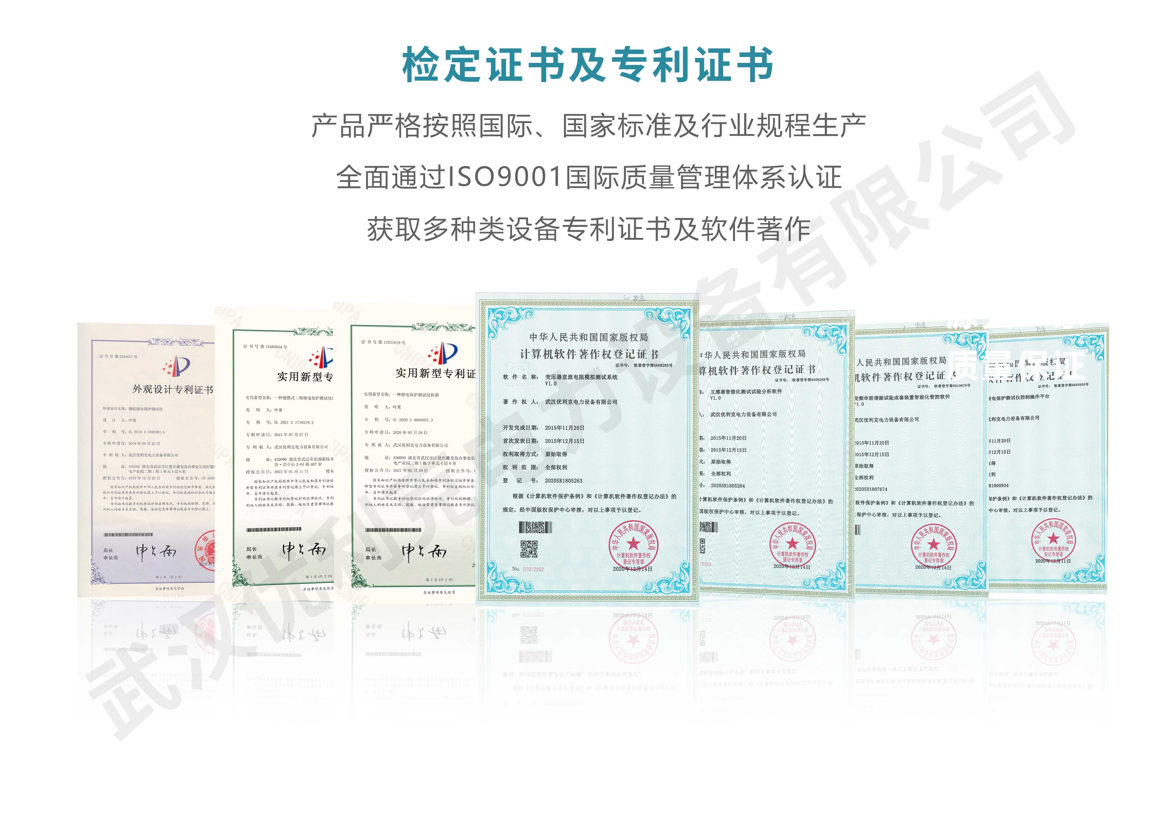 企業產品嚴格按照國際、國家標準及行業規程生產,通過國家、各省級、市級電力研究所、計量中心及電力權威部門的檢測,全面通過ISO9001國際質量管理體系認證、中華人民共和國制造計量器具許可證、GB/T19001-2016質量管理體系要求、GB/T24001-2016環境管理體系要求、GB/T45001-2020職業健康安全管理體系要求。