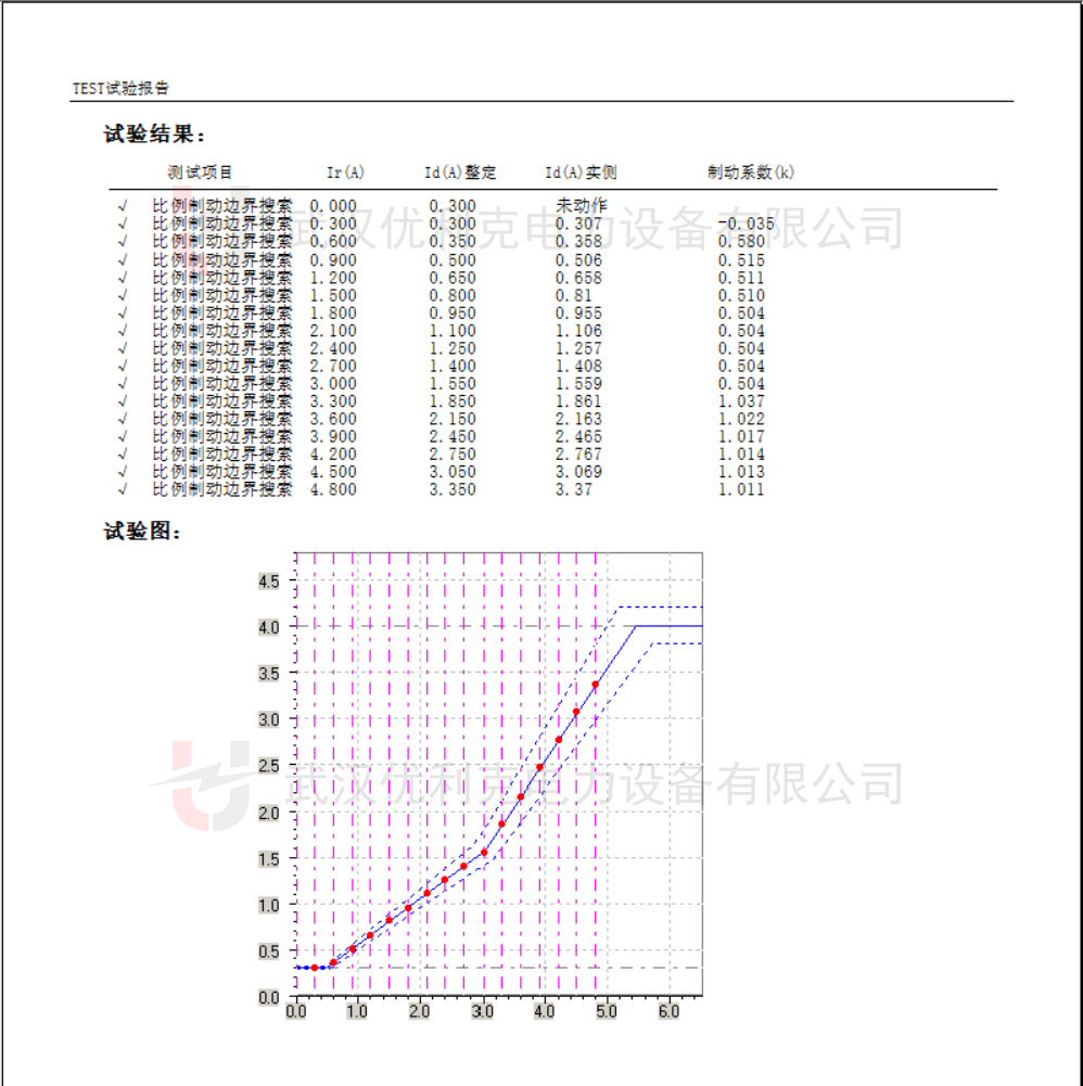 • 比較實測動作值與保護定值(如差動門檻0.5Ie、斜率0.5)是否一致。